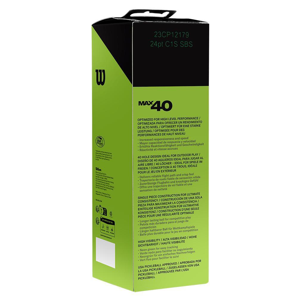 Be ready to play with the WilsonMax 40 Outdoor Pickleball Case Green. The single-piece construction with 40 holes ensures a consistent flight pattern and responsiveness. A bright neon color makes the balls easy to track even in the midst of high-speed action.