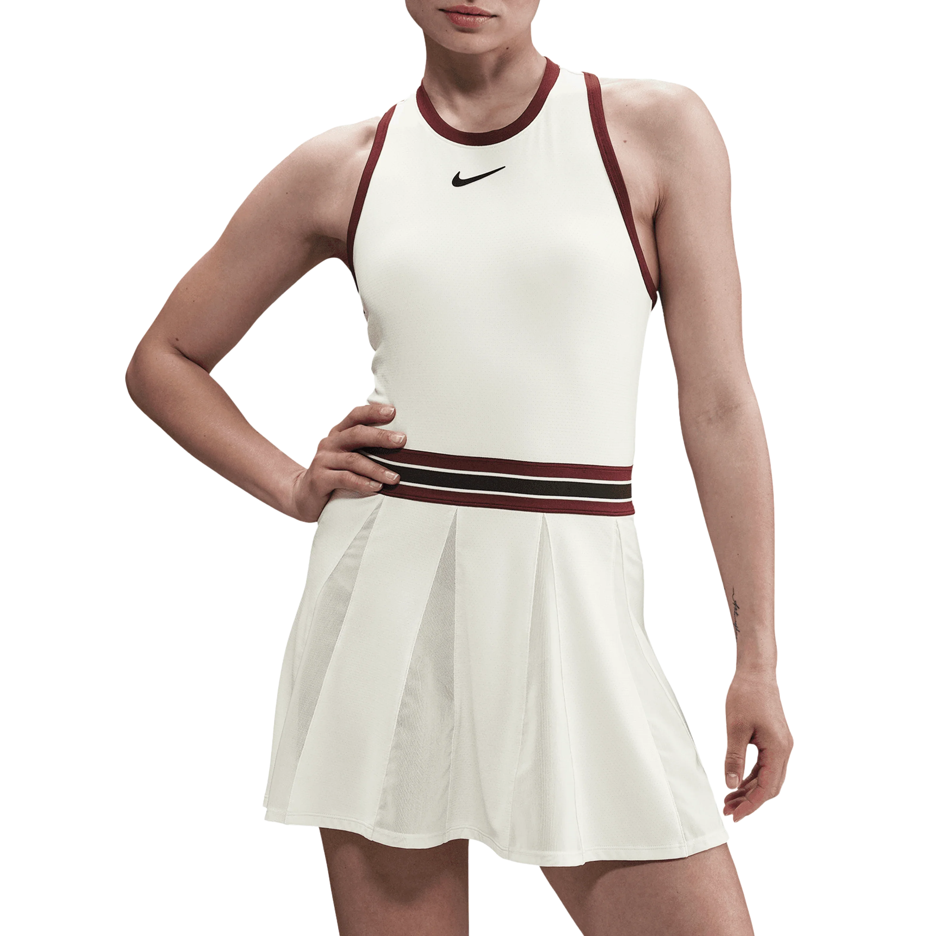 Serve looks and performance with the Nike Women’s Paris Court Dri-FIT Slam Tennis Dress. Designed for the grand stage, this eye-catching dress features petal-like pleats that flare with every movement, giving you freedom and flair as you cover the court. The high neckline and racerback offer a sleek, modern shape, while the lower back cutout enhances airflow and adds a bold twist to the silhouette. A built-in elastic waistband ensures a snug yet flexible fit that flatters your form and stays secure during play. Crafted with Nike’s Dri-FIT technology, this dress keeps sweat in check so you stay cool, dry, and focused through every set. Perfect for players who want standout style with all-day comfort.