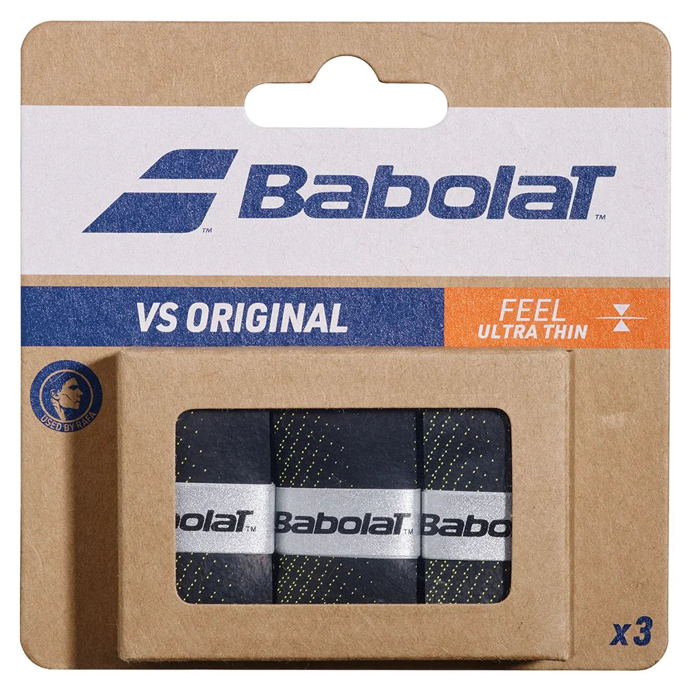 The Babolat VS Original Tennis Overgrip is the thinnest overgrip in the world (0.40 mm). This grip does not modify the size of the racquet handle, but instead provides exceptional feel and unmatched performance. Our team found that the VS Original actually aids in preventing pesky calluses and painful blisters that usually occur from long hours of play. Babolat`s new material technology protects the overgrip against humidity, dirt, and optimizes overall playability and durability.