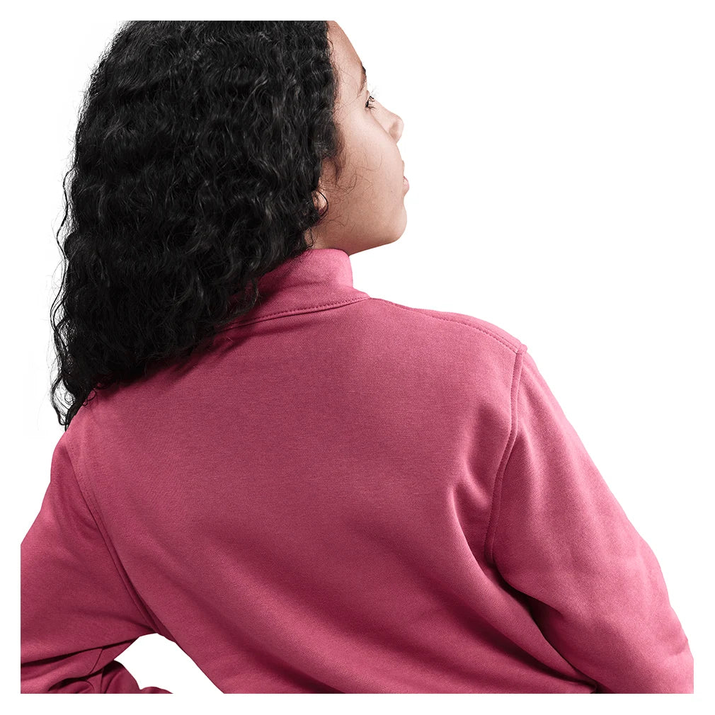 Perfect for those tricky in-between weather days when you can't decide if you need a jacket or not! The Nike Girls` Sportswear Club Fleece 1/2-Zip Long-Sleeve Top is smooth on the outside and brushed soft on the inside, creating that cozy layer that's ideal for playground adventures to practice sessions. The easy-fitting design works for every shape and size, while extra stretch in the cuffs ensures long-lasting comfort and hassle-free on and off. With a slightly cropped fit that hits at your hips and a convenient 1/2-zip design, you can easily adjust your warmth level throughout the day.