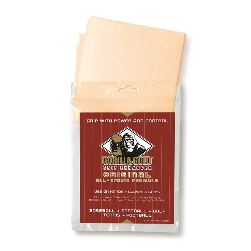 Gorilla Gold is a towel that`s integrated with a solution that allows you to ìtack upî your grip to meet the conditions of the day you play. It allows you to grip with complete confidence with no fear of losing the grip or having it slip in your hand no matter how humid the weather or how much you`re sweating.