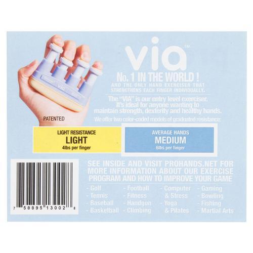 The Pro Hands Via Hand Exerciser is the perfect beginner grip for players looking to strengthen their hands and improve dexterity. The Via challenges each individual finger using spring-loaded tension set at 4 pounds per finger, increasing overall hand health and performance by building muscles, ligaments, and tendons. This lightweight model is ideal for children over 12 and seniors.