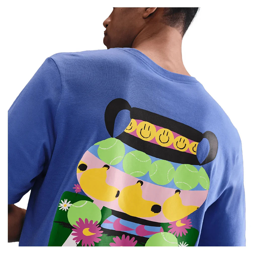 The Nike Men`s Court Tennis Tee celebrates tennis culture with its vibrant and fun graphic prints. A crew neck design and midweight cotton fabrics ensure the utmost comfort while you play a friendly match or cheer on your favorite players.