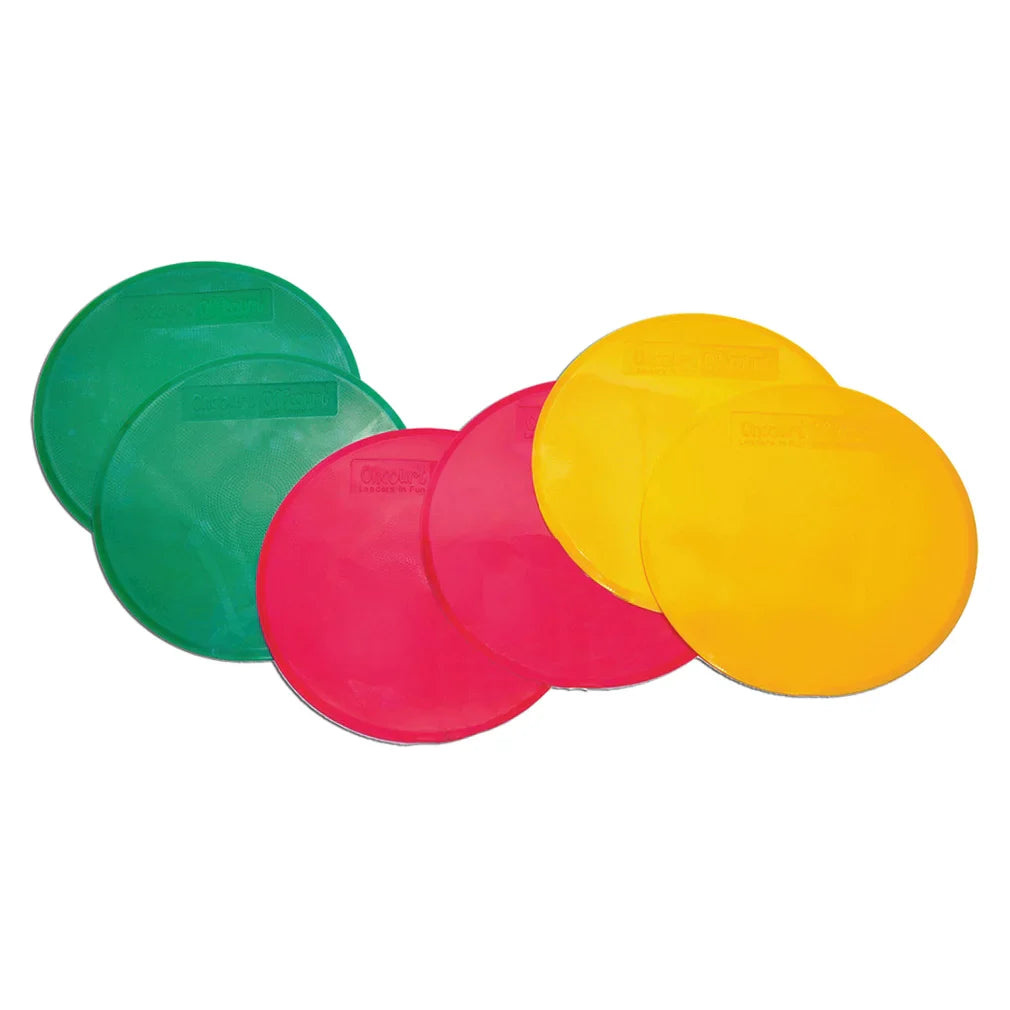 The Oncourt Offcourt Court Shapes is ideal for developing running, recovery, and decision-making skills. The Spots are 10 inches in diameter and packaged in sets of 6 spots: 2 red, 2 green, and 2 yellow. The bright colors are easy to see for kids and stays on the court for excellent exercises.