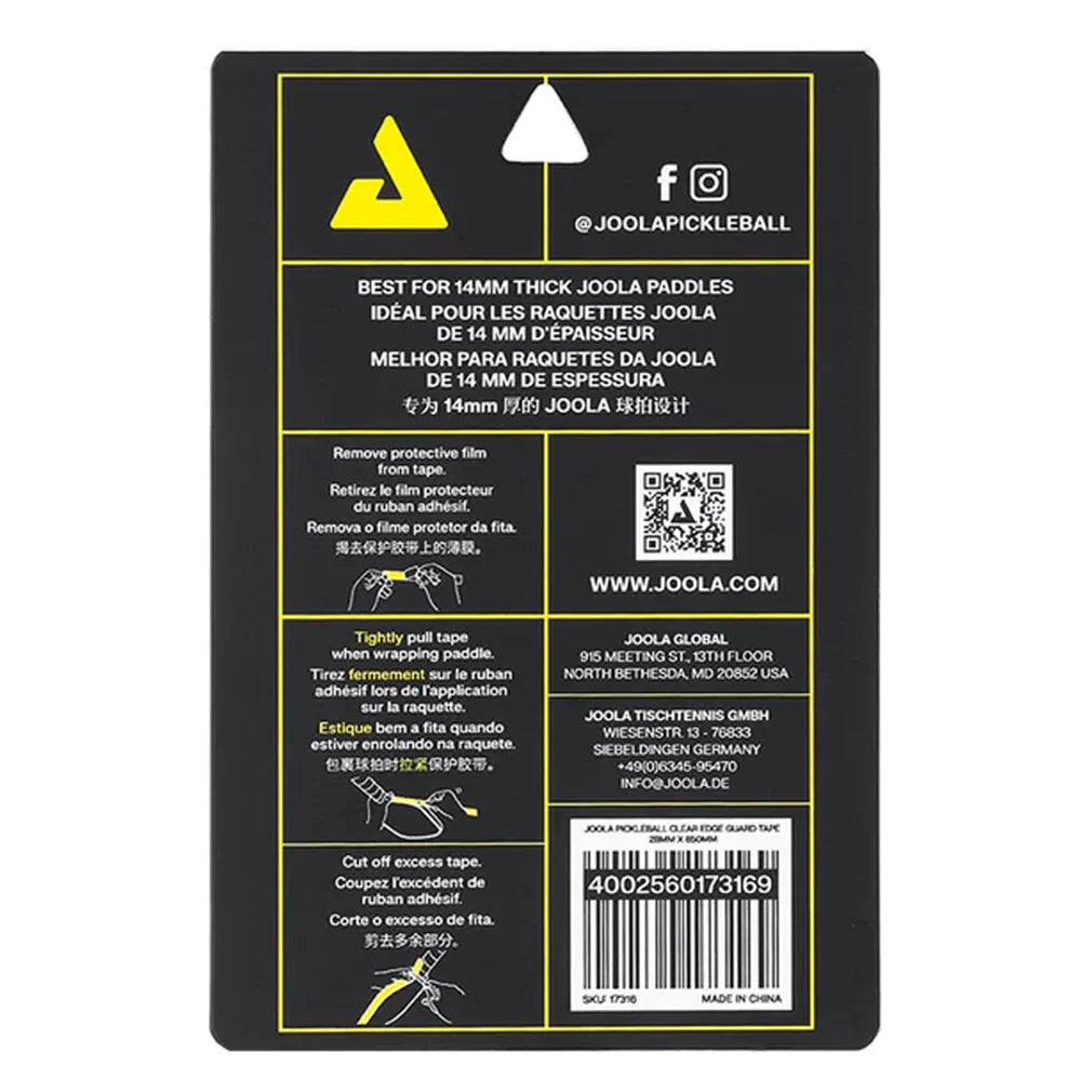 Keep your paddle in top form with the Joola Pickleball Clear Edge Guard Tape. The clear coloring lets you appreciate your paddle's dynamic design while protecting the edge from scuffs and scrapes. The 28mm wide tape is best used on 14mm thick paddles.