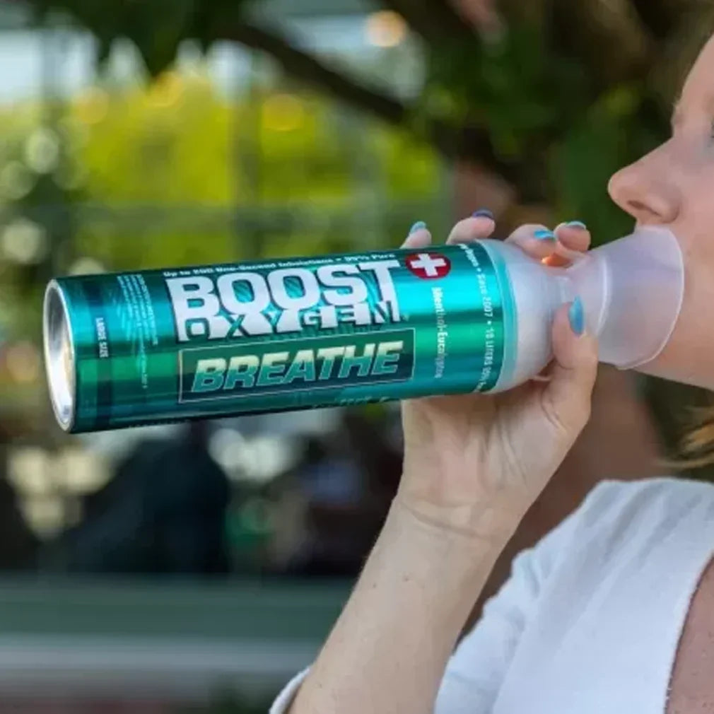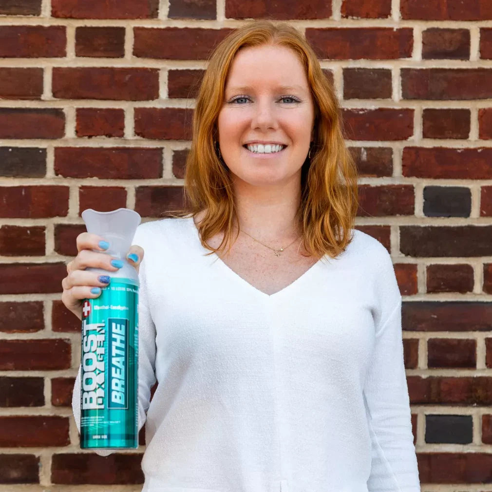 Take a breather with the Boost Oxygen Supplemental Oxygen canister. Prescription-free supplementary oxygen helps with aerobic recovery to ease stress, uplift your mood, and refresh your senses. Whether you need to catch your breath between sets, live in a high-altitude area, or there is poor air quality, an extra boost can help you feel better and recover faster. Each Large-sized canister provides enough air for up to 200 1-second-long inhalations.