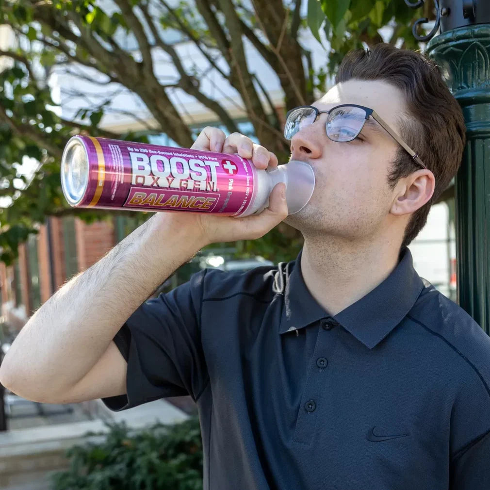 Take a breather with the Boost Oxygen Supplemental Oxygen canister. Prescription-free supplementary oxygen helps with aerobic recovery to ease stress, uplift your mood, and refresh your senses. Whether you need to catch your breath between sets, live in a high-altitude area, or there is poor air quality, an extra boost can help you feel better and recover faster. Each Large-sized canister provides enough air for up to 200 1-second-long inhalations.